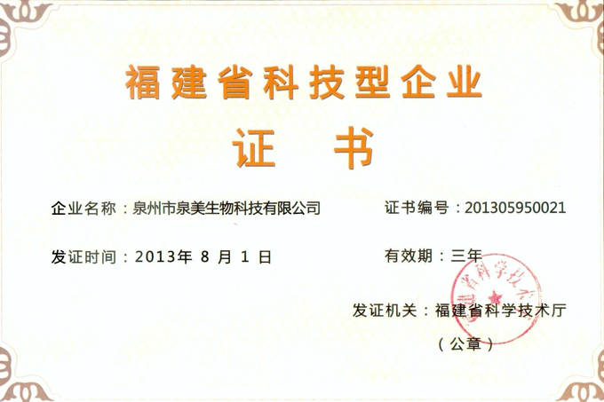 福建省科技型企業(yè)證書(shū)